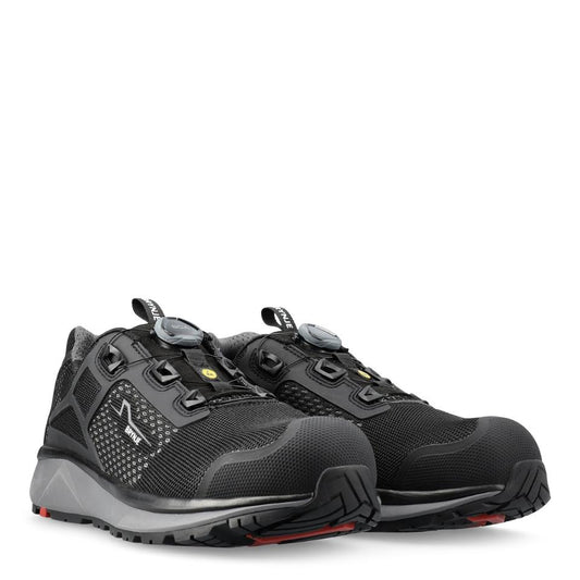 Skoen strammes og løsnes med det innovative BOA® Fit System, som gir perfekt passform. ProNose av KPU, som er et slitesterkt materiale, er godkjent i henhold til 2022-standarden og anbefales for knelende arbeid. Sklihemmende gummi-yttersåle som sammen med en myk og støtdempende mellomsåle av EVA, gir en komfortabel og fleksibel sko.