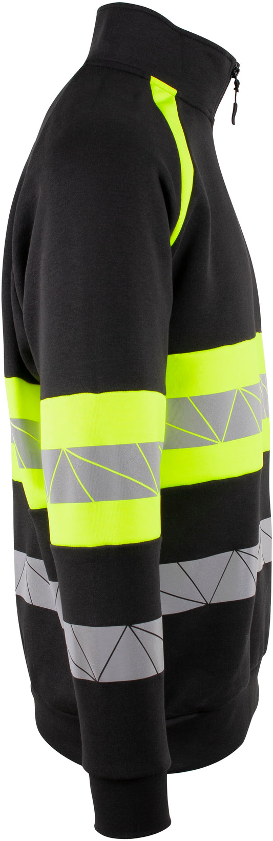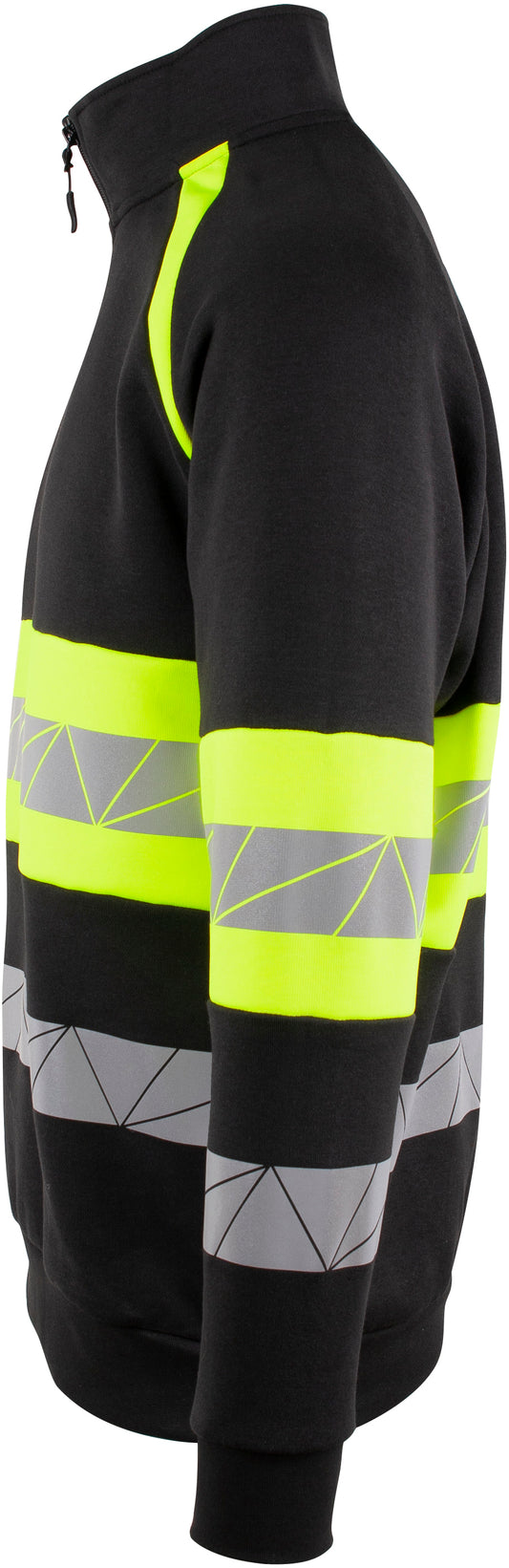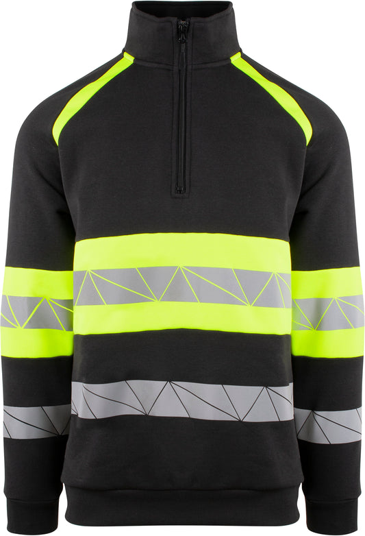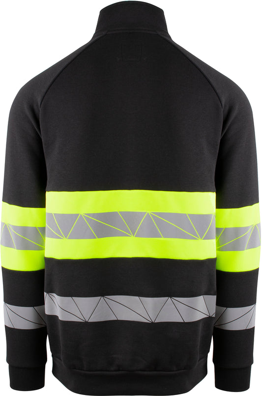 Tofarget unisex zip genser med kontrastfelt og elastisk refleks rundt midje og ermer. 3/4 glidelås i halsen. CE-merket EN 20471, klasse 1.
